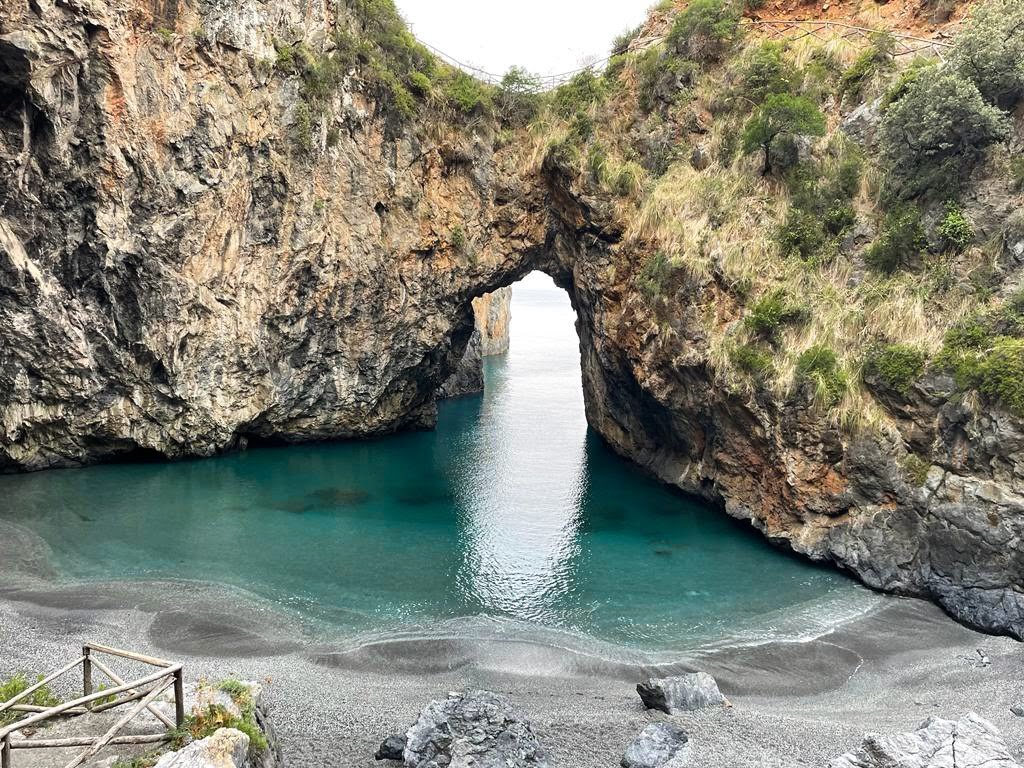 Spiaggia iconica con arco naturale nella roccia, tra le più fotografate del Tirreno. -